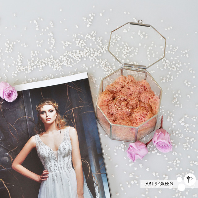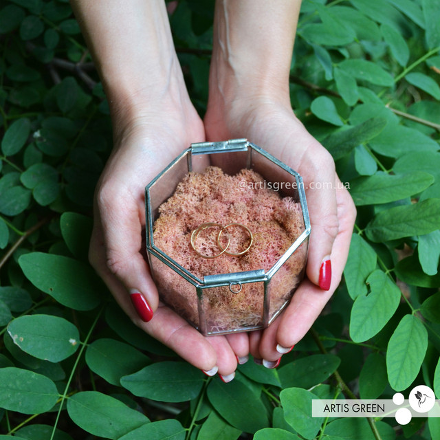 Скляна скринька з мохом для кілець і прикрас, рожевий