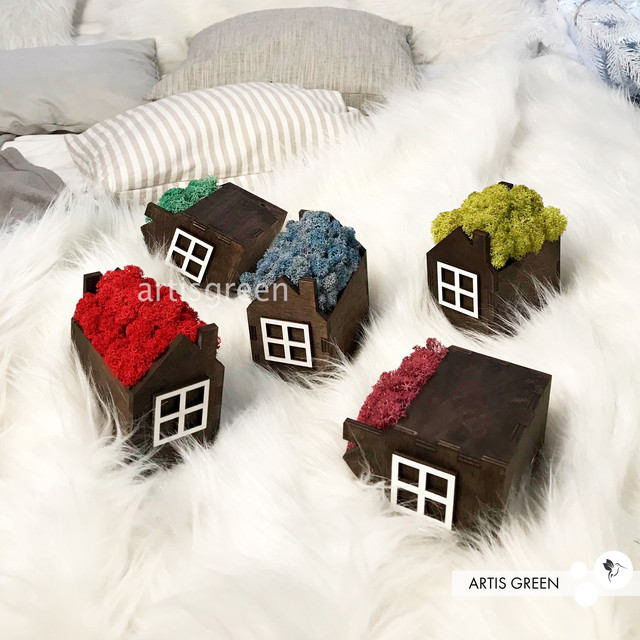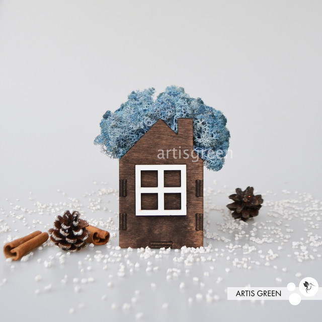 Корпоративні подарунки. Подарунок на свята. Будиночок зі стабілізованим мохом, блакитний